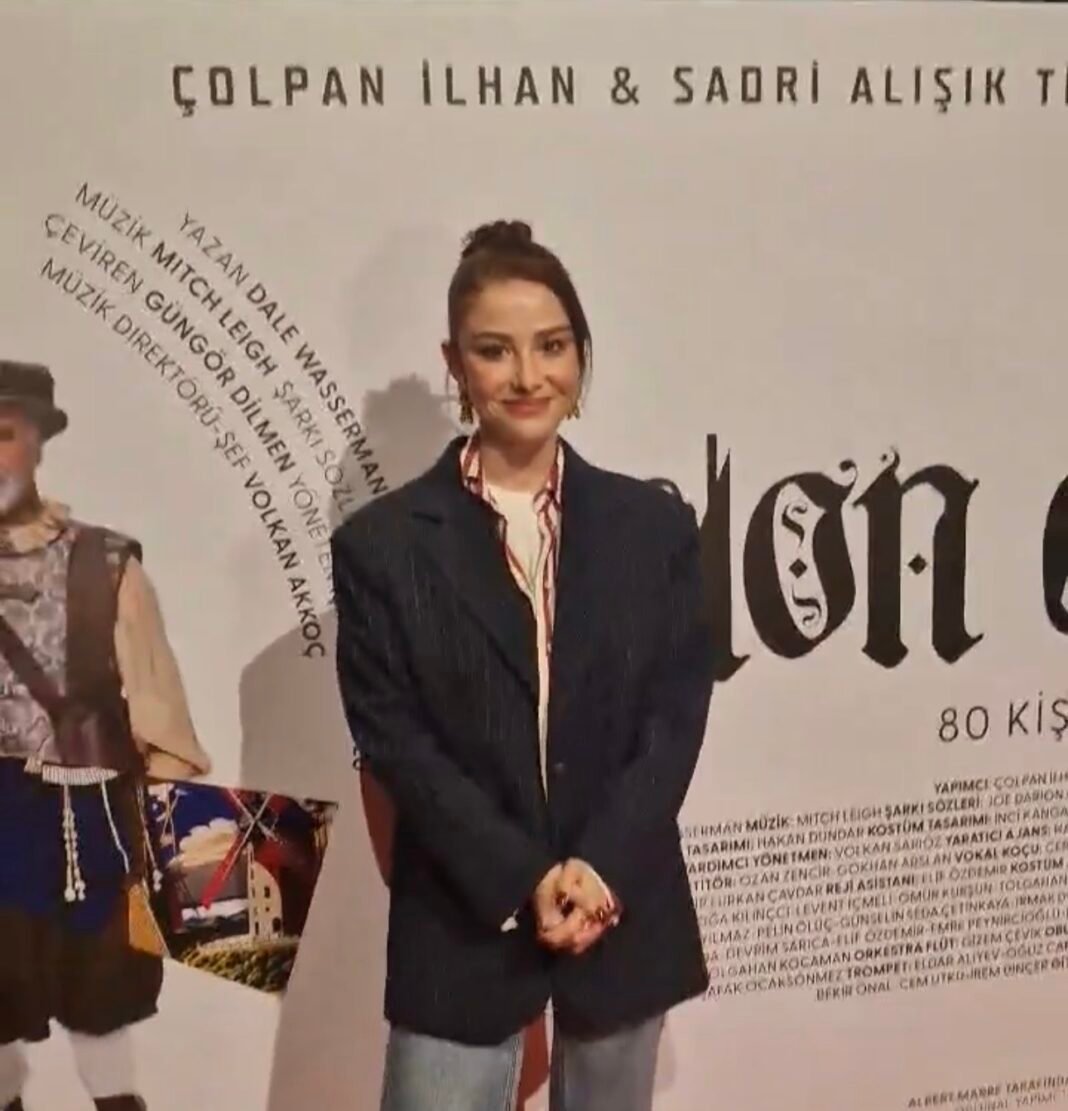 Meta Description: Özge Gürel Don Kişot Galasında şıklığıyla öne çıktı. Sanat gecesi, tiyatro ve edebiyat tutkunlarını aynı salonda buluşturdu.