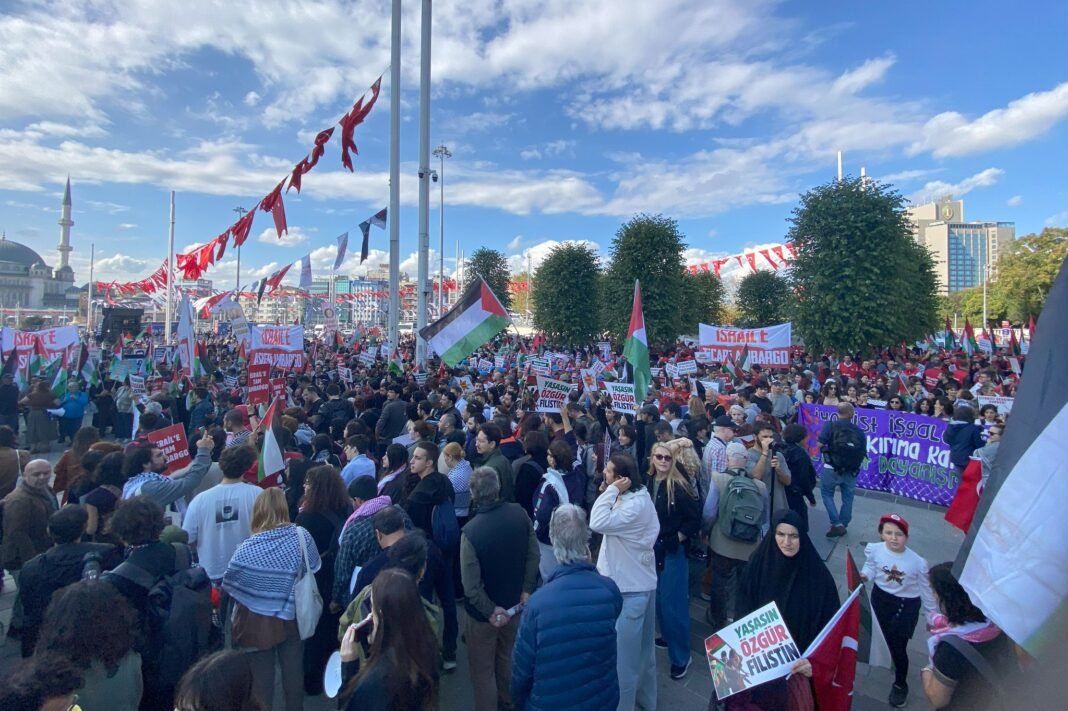 İstanbul bugün güçlü bir sesle yankılandı. Binlerce kişi, “Özgür Filistin için İsrail’e tam ambargo” talebiyle sokaklara çıktı. Katılımcılar, Taksim Atatürk Kültür Merkezi önünde toplandı ve Dolmabahçe’ye kadar yürüdü. Bu yürüyüş, Gazze’deki İsrail saldırılarının ikinci yılında düzenlendi.