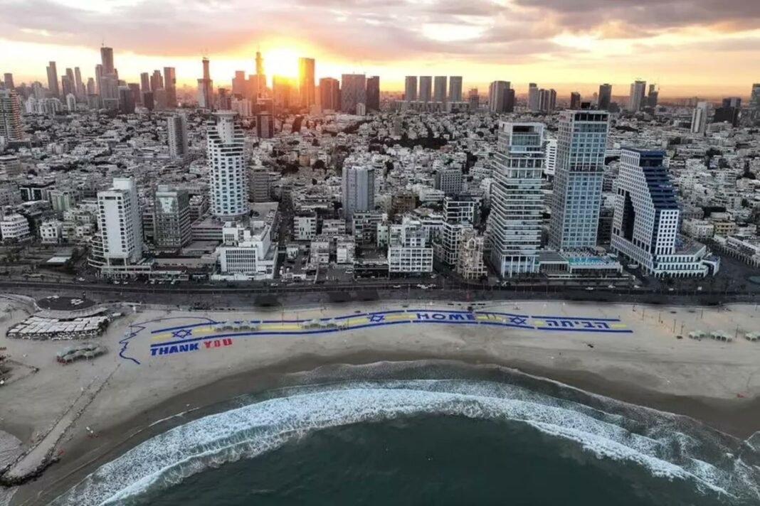 ABD Başkanı Donald Trump, Gazze’deki ateşkesin ardından İsrail’i ziyaret etti. Ziyareti öncesinde Tel Aviv plajlarında, üzerinde Trump’ın fotoğrafı ve “Teşekkürler Trump” yazan dev bir pankart asıldı. Bu pankart, Trump’ın uçağının Ben Gurion Havalimanı’na yaklaşırken görünmesi için stratejik bir şekilde yerleştirildi.